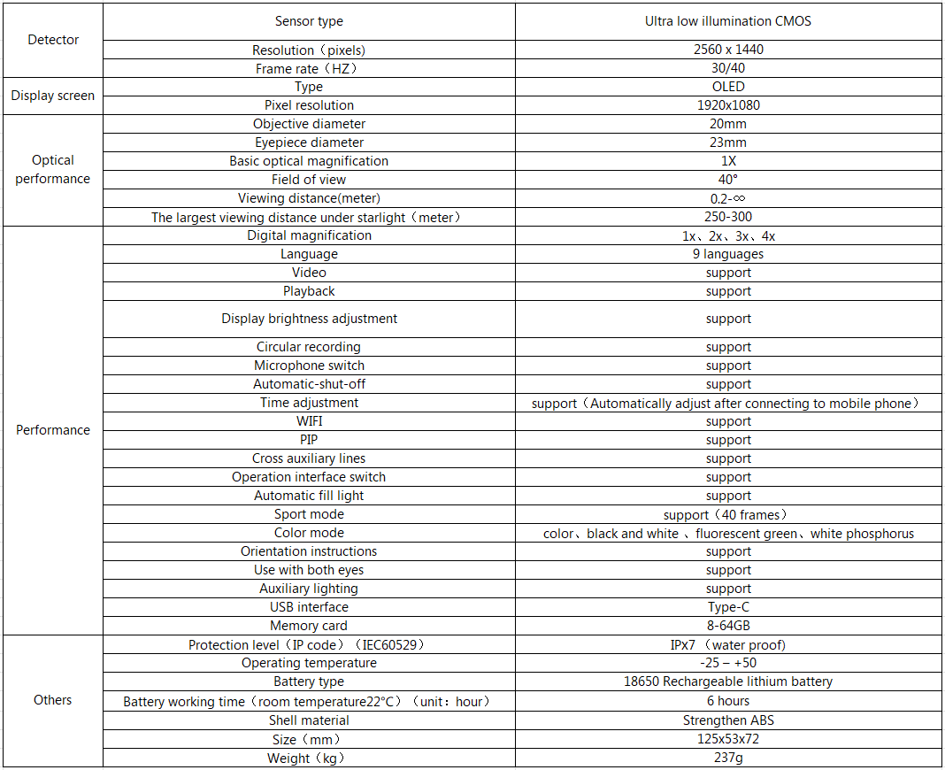 • Multiple display modes: Night vision goggles often have different display modes, such as black and white mode and color mode. These modes can be selected based on the usage environment and personal preference.