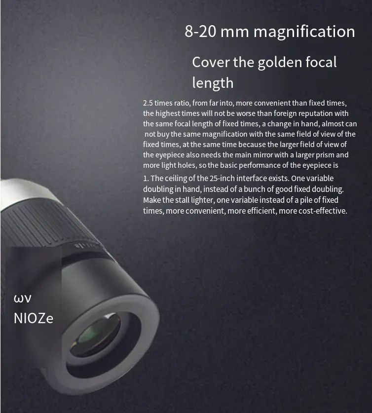 Astronomical Viewing Excellence: Designed for clear and detailed observation of celestial bodies with an 8-20mm APO zoom eyepiece.