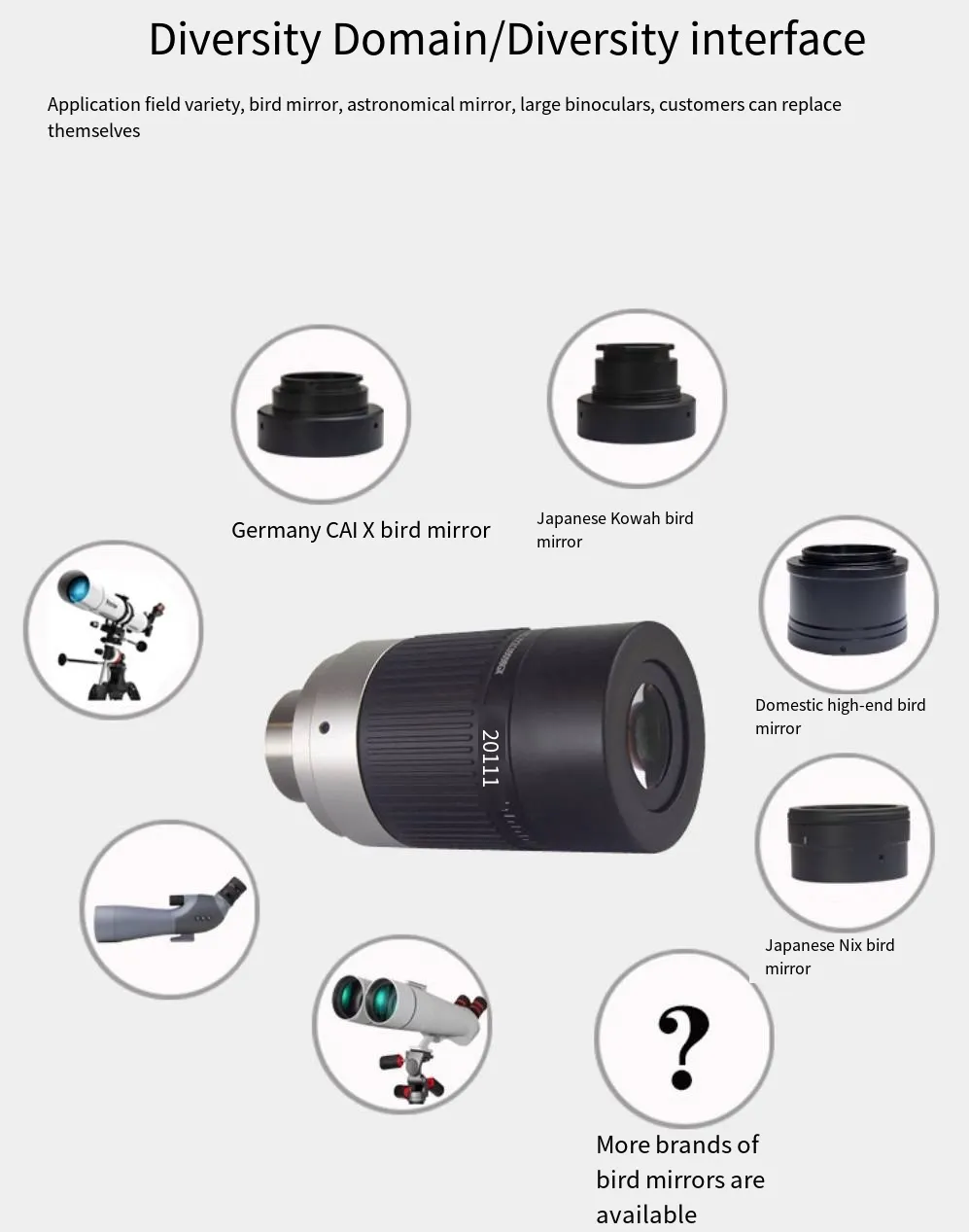 Ultra-Wide Field of View: Provides an expansive 60°-80° field of view, unmatched by other zoom eyepieces.